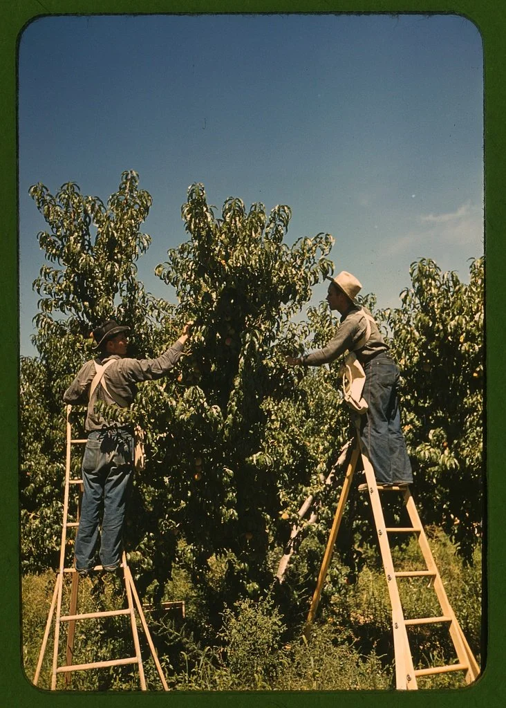 Pickers in a peach orchard, Delta County, Colorado. Lee, Russell. 1940.
