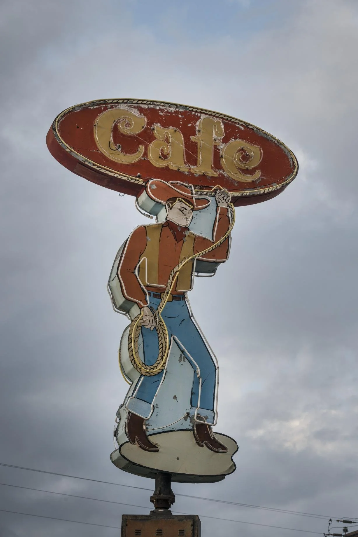 Cafe advertising sign on the road from Johnson City to Kerrville, Texas. Highsmith, Carol M.