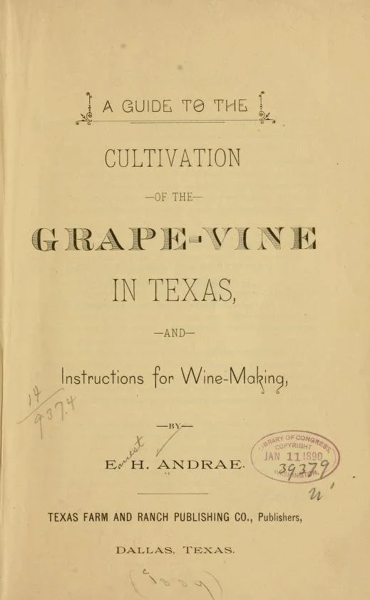 A guide to the cultivation of the grape-vine in Texas, and instructions for wine-making. Andrae, Ernest H. 1889.